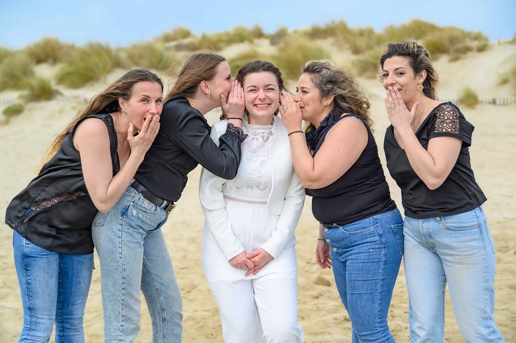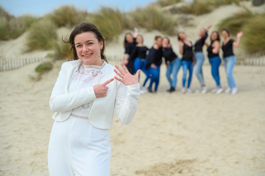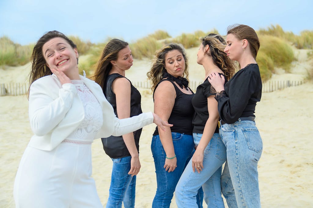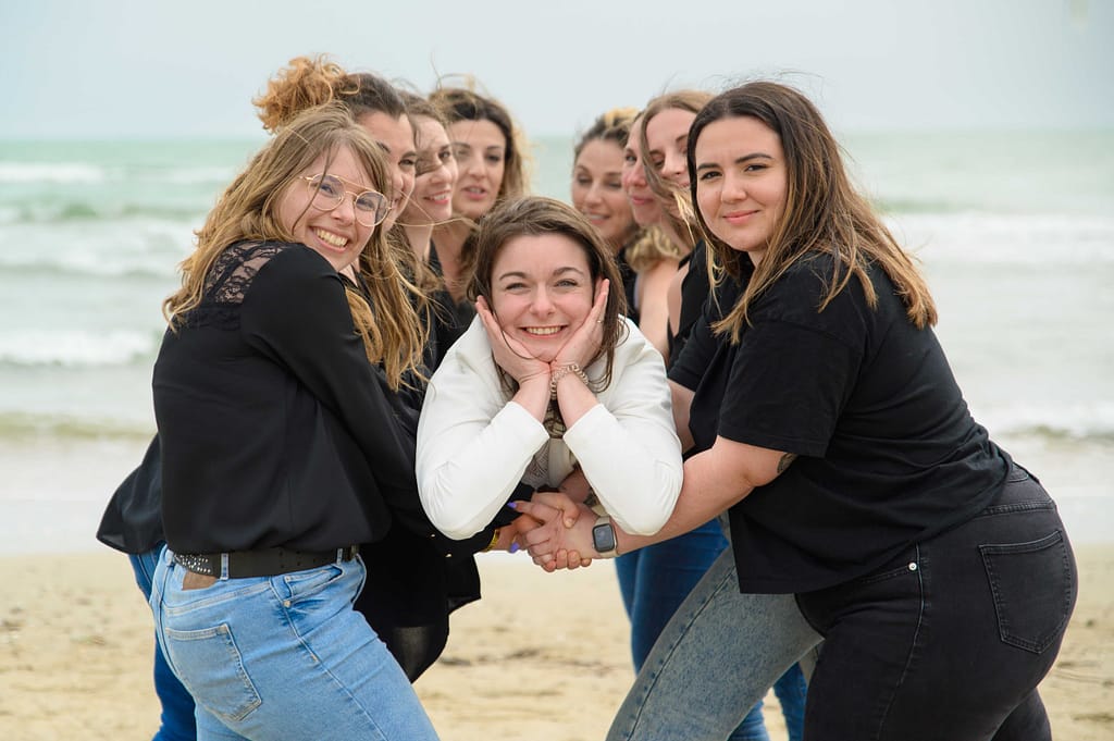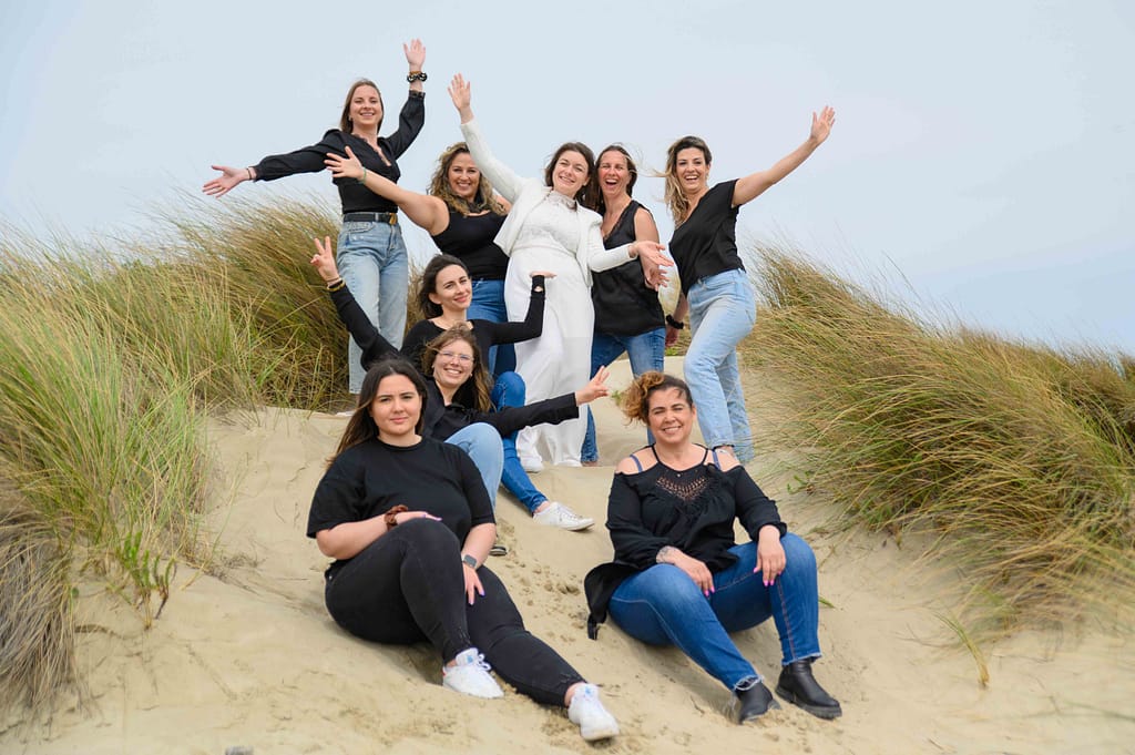 Pour cet EVJF à La Grande Motte, nous avons profité d’un décor naturel magnifique : la plage, les dunes et une lumière douce typique du littoral. En effet, c’était une séance simple, fun et pleine de spontanéité, pensée pour mettre en valeur la future mariée et l’énergie du groupe.