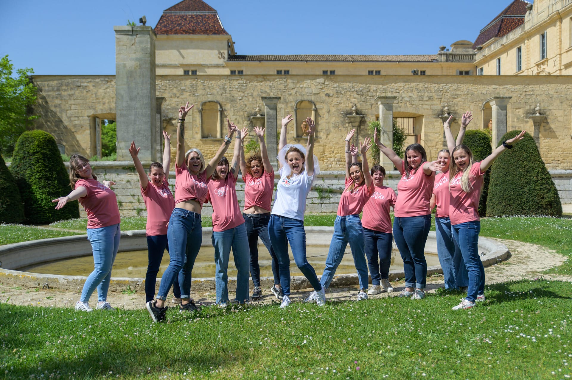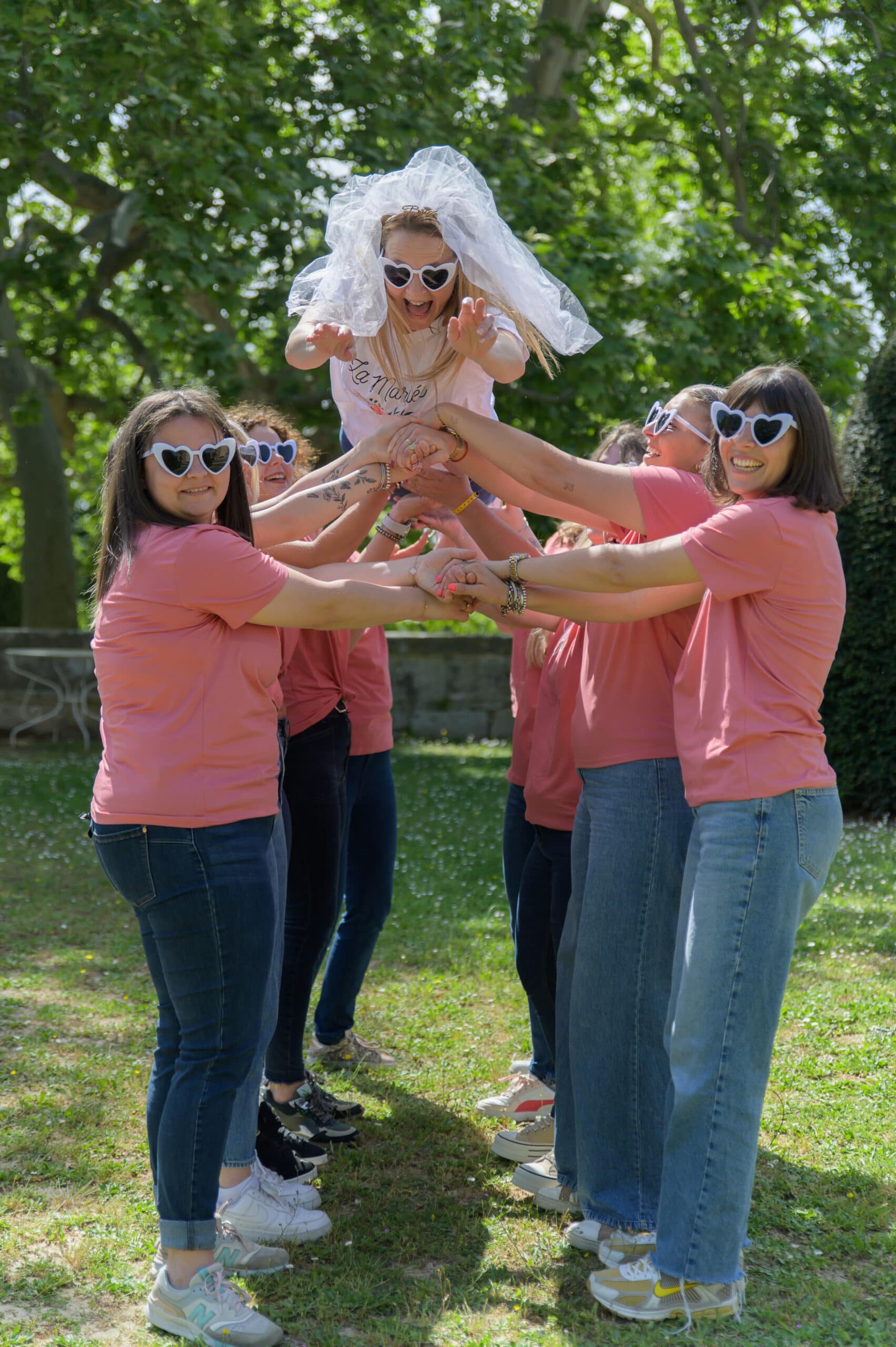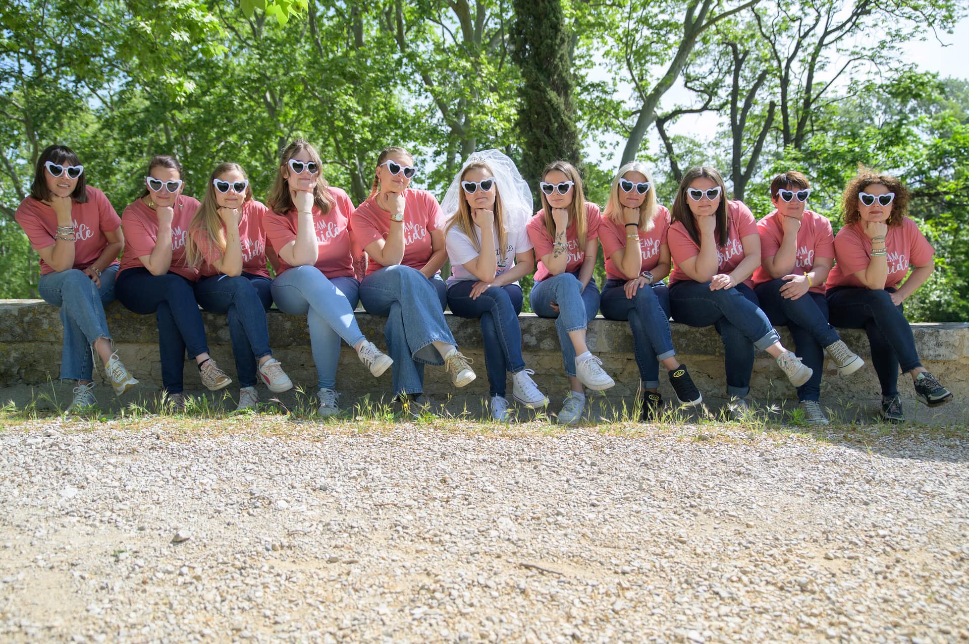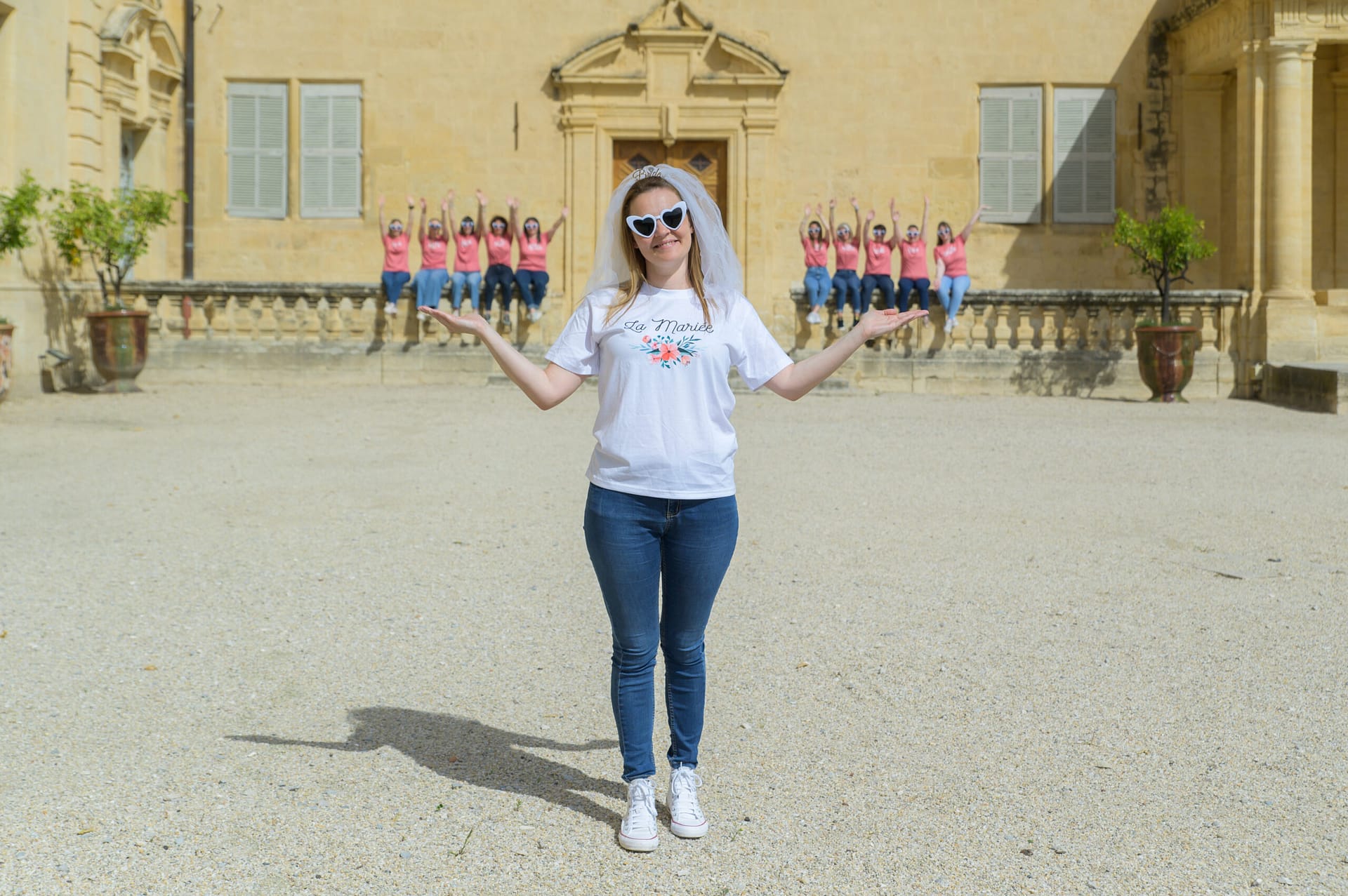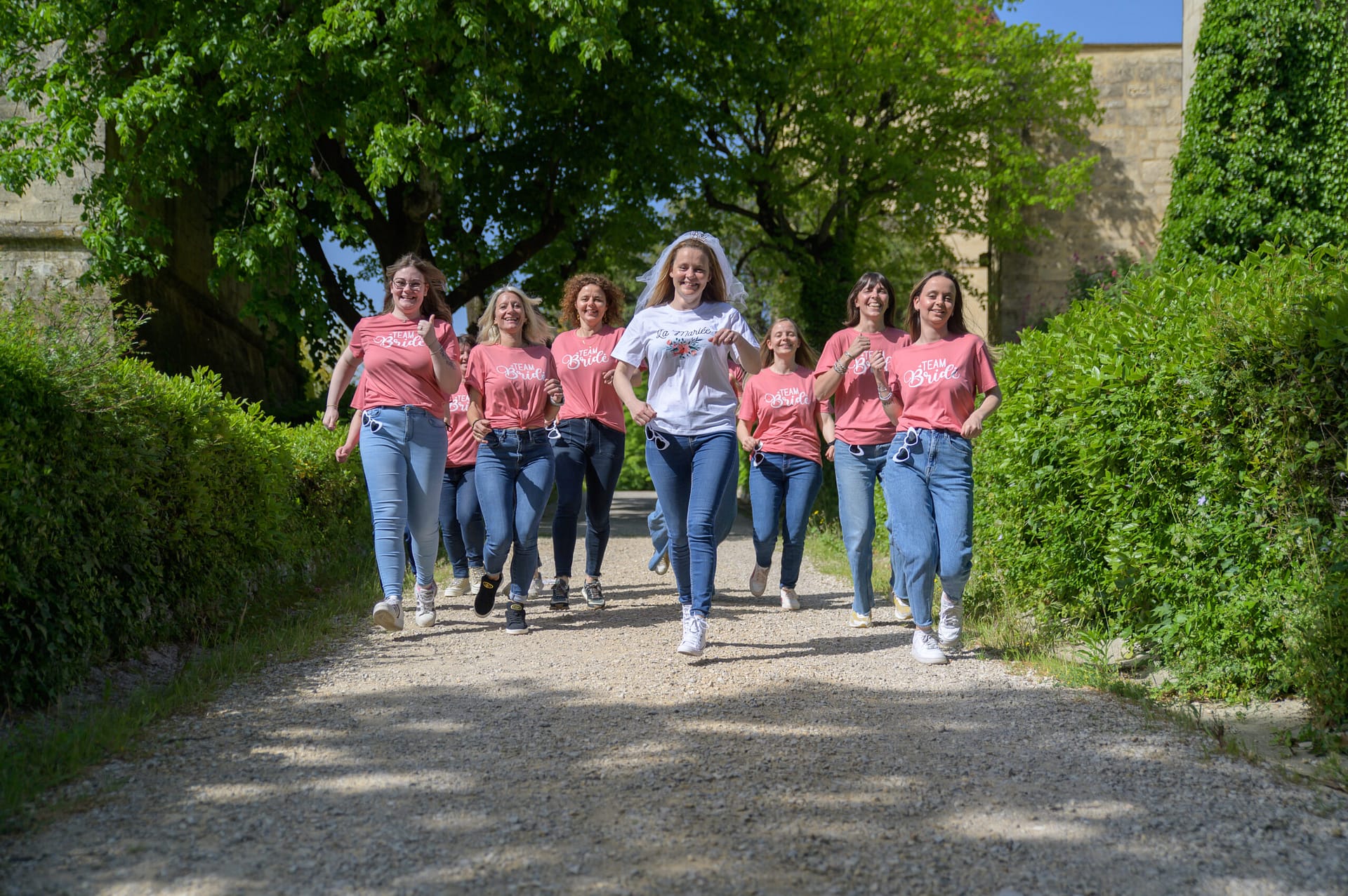 Un EVJF joyeux et complice au château de Castries, capturé dans un décor historique et naturel qui se prête parfaitement aux séances photo dynamiques et spontanées.