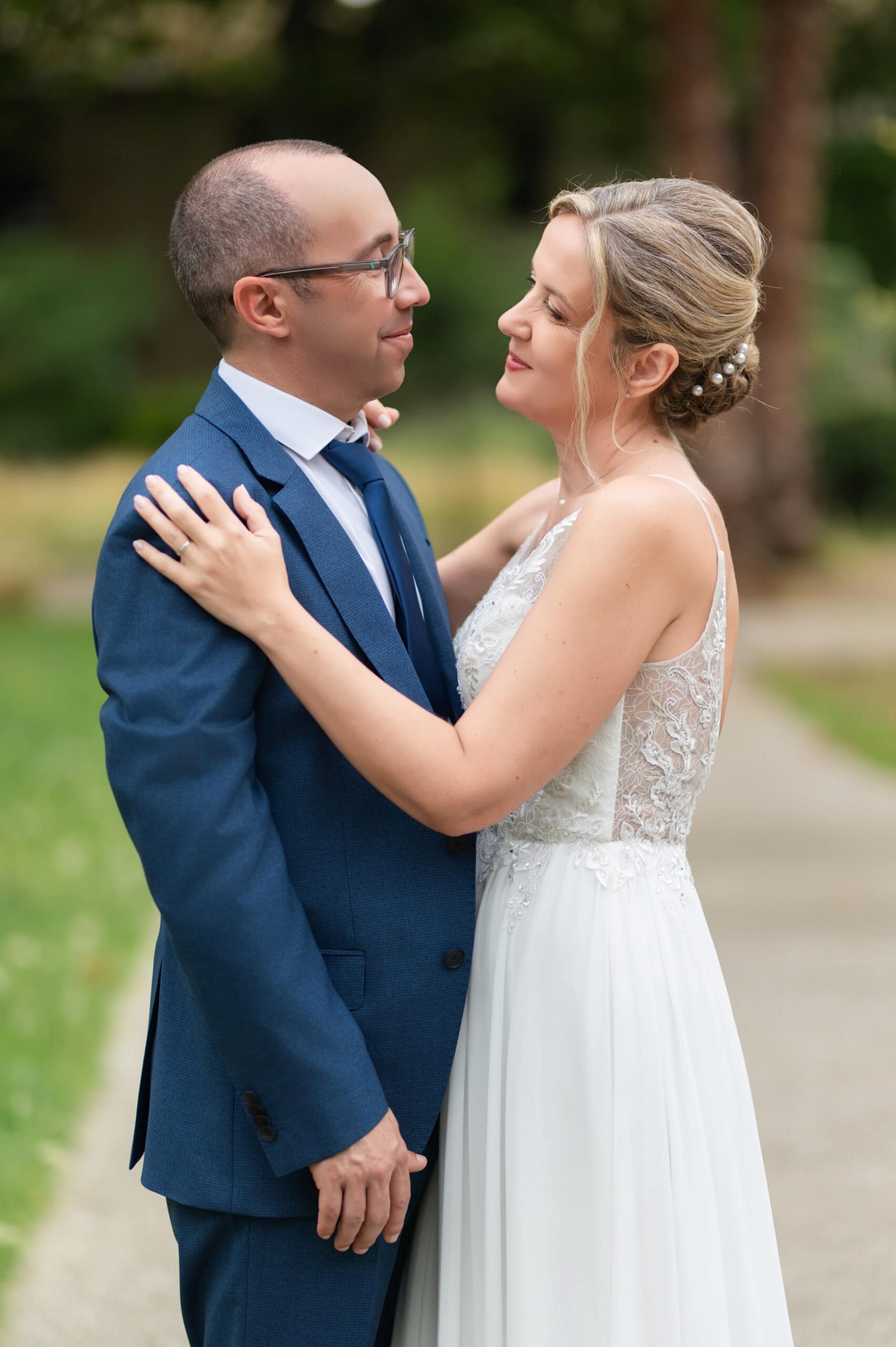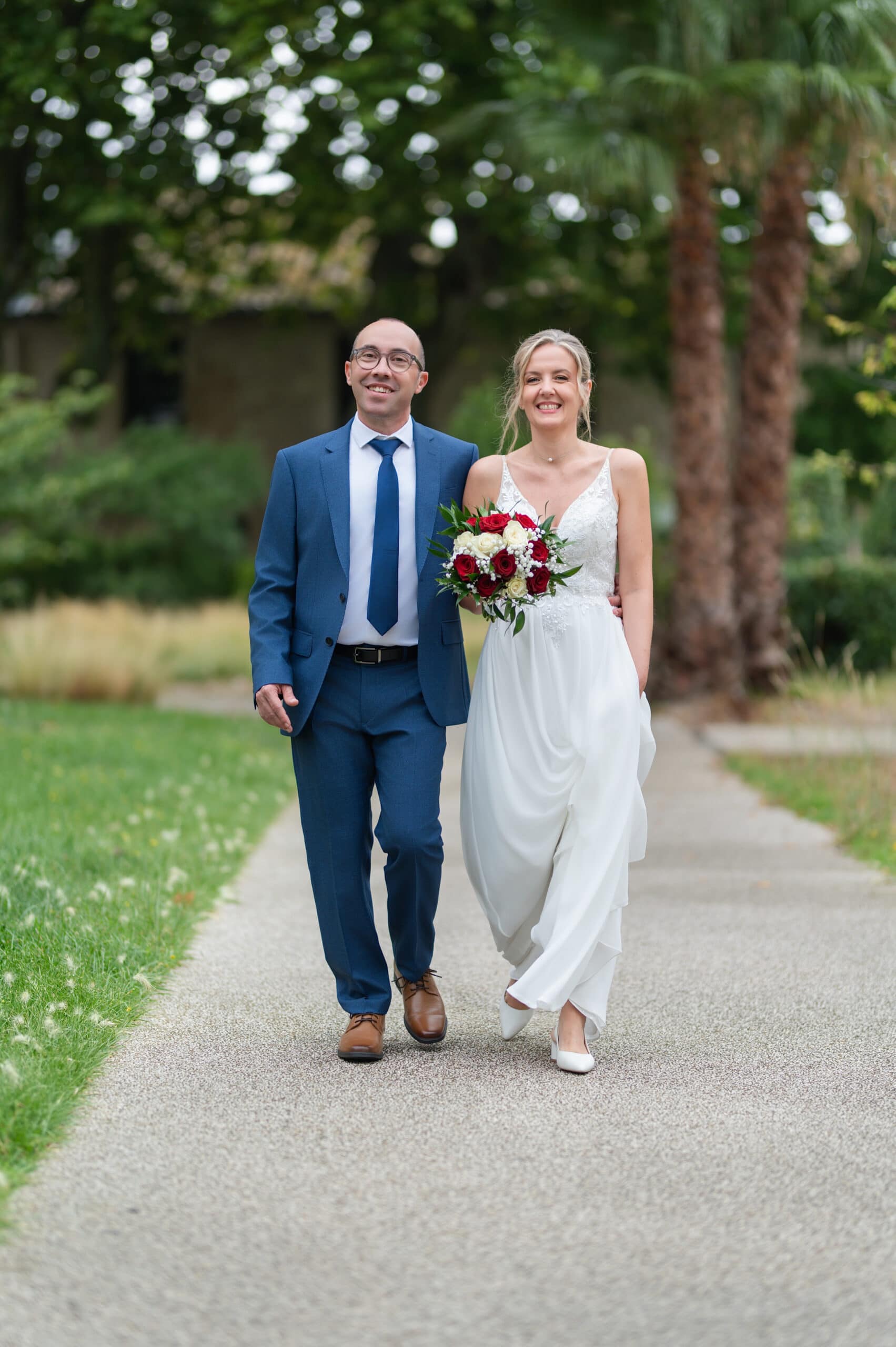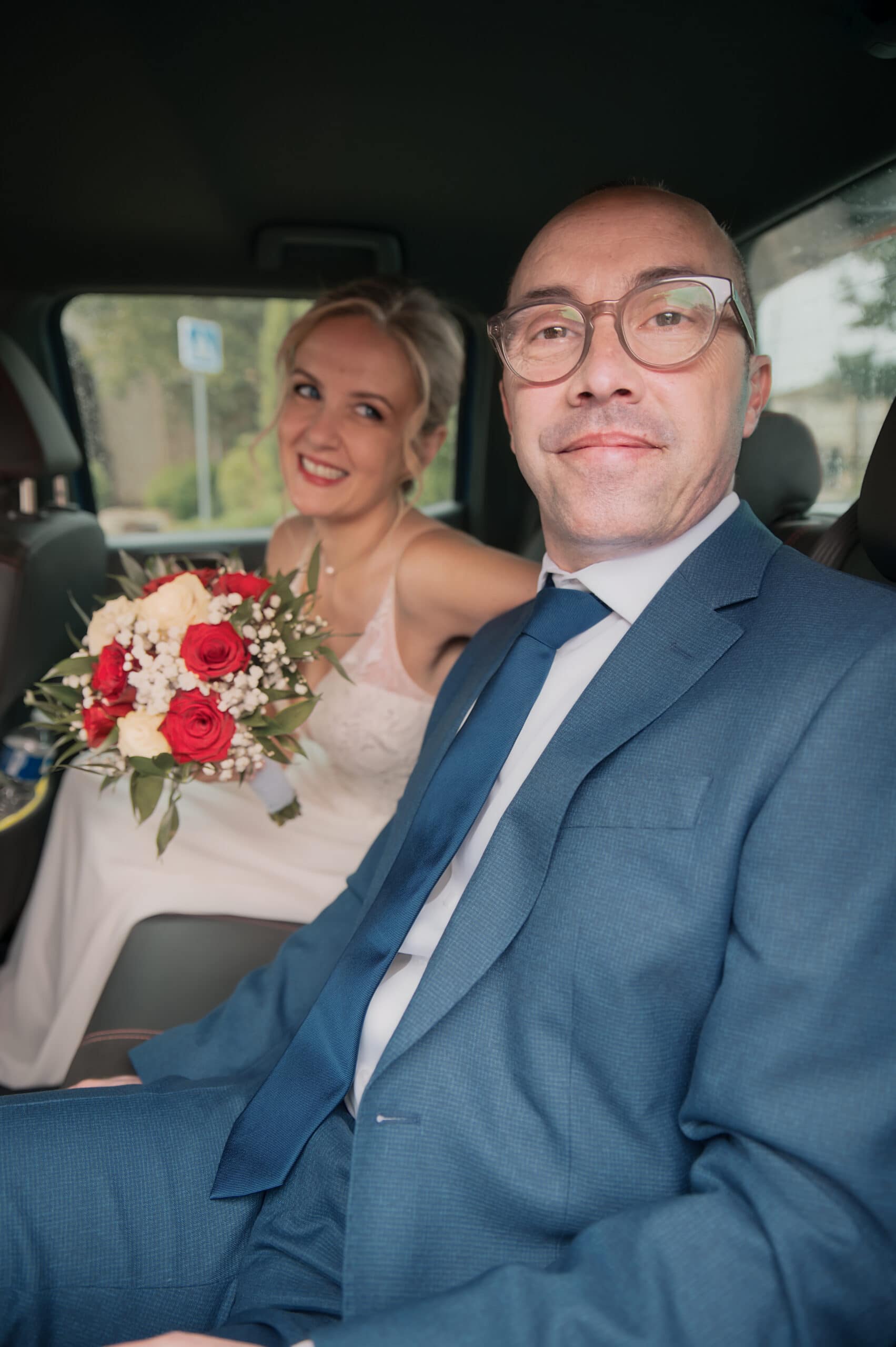 Ainsi, j’ai commencé le reportage dès les préparatifs, un moment que j’aime photographier. En effet, c’est là que tout se joue : les derniers détails, les émotions qui montent, les regards complices et les gestes tendres. Ensuite, j’ai suivi les mariés jusqu’à la mairie. Puis, nous avons poursuivi avec la séance photo de couple et les photos de groupe, afin de raconter leur journée du début à la fin.
