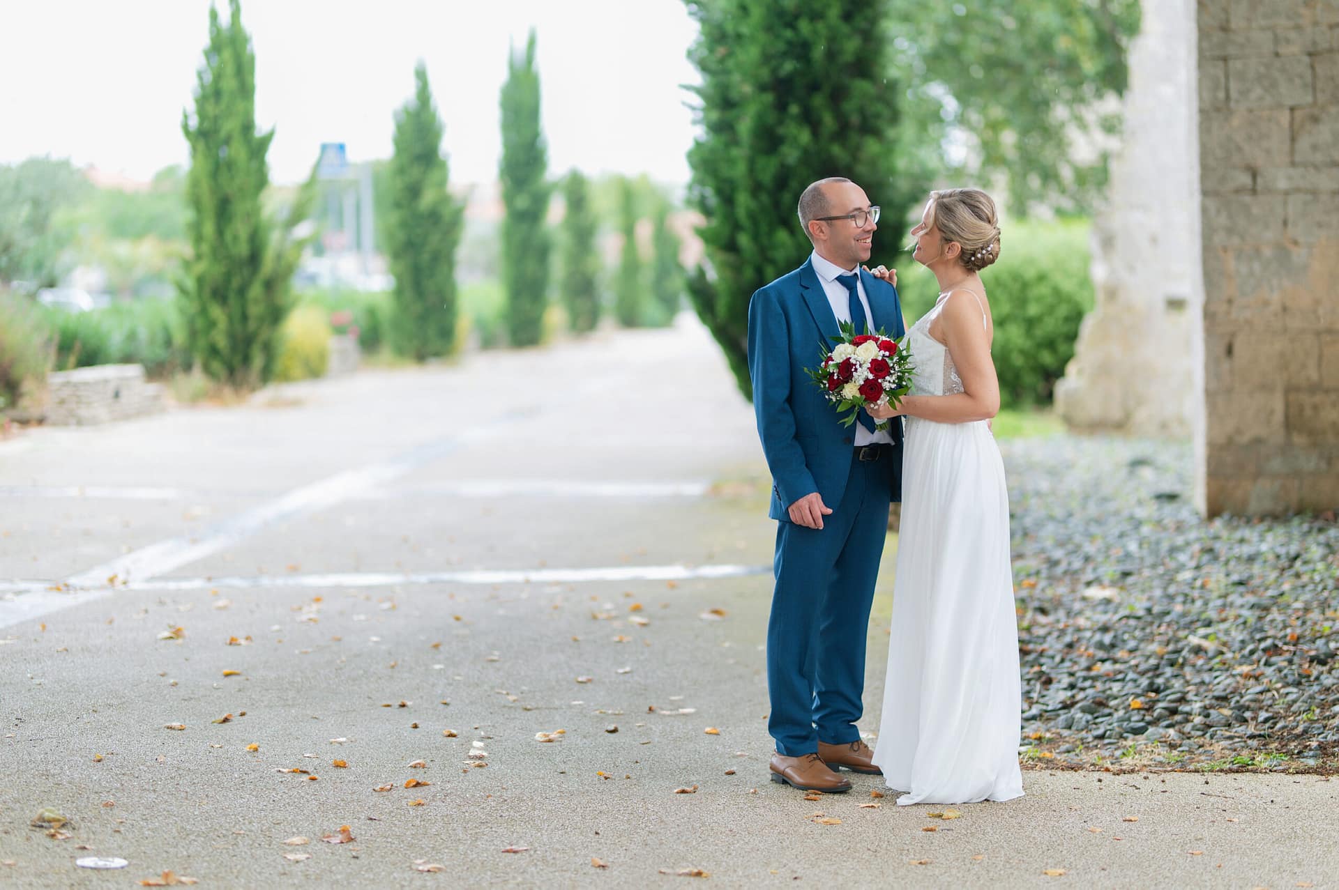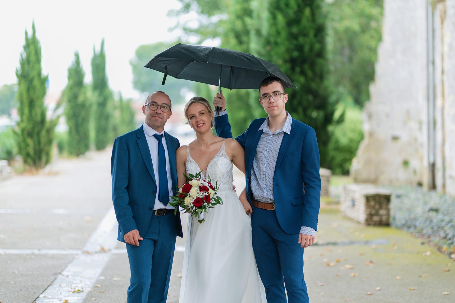 Grâce à leur confiance et à leur bonne humeur, les mariés ont joué le jeu. En effet, ils étaient radieux et déterminés à profiter de leur journée, malgré les gouttes. De même, leur complicité et leur énergie ont illuminé chaque image. Ainsi, même sous un ciel chargé, la séance est restée douce, vivante et pleine d’émotions.